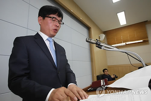 | △ 청주노인병원 폐업 선언하는 한수환 원장 (청주=연합뉴스) 김형우 기자 = 청주시노인전문병원 민간위탁운영자인 한수환 씨엔씨재활요양병원장이 6일 오전 청주시청 브리핑룸에서 기자회견을 하고 있다. 이 자리에서 그는 "2012년 1월부터 제가 위탁 운영한 시노인전문병원을 다음 달 10일 자로 폐업하고 의료기관 개설 허가증을 시에 반납할 것"이라고 밝혔다. 2015.5.6 vodcast@yna.co.kr |