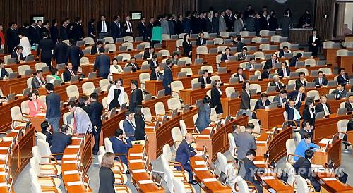 | △ (서울=연합뉴스) 백승렬 기자 = 새누리당 의원들이 6일 국회 본회의에서 박상옥 대법관 임명동의안에 대해 단독으로 투표하고 있다. srbaek@yna.co.kr |