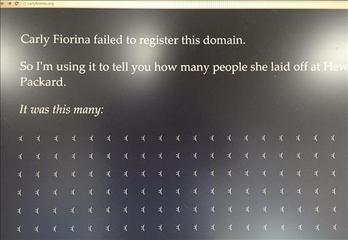 이 사이트에 접속하면 '피오리나가 이 도메인을 등록하지 않았기 때문에 그녀가 휴렛팩커드에서 얼마나 많은 사람들을 해고했는지 알리려 한다'며 해고된 사람들의 수를 이모티콘으로 나열해 놓고 있다.