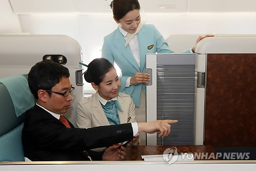 좌석 사이에 개인용 칸막이 뿐 아니라 복도 쪽의 칸막이 크기를 대폭 키우고 발걸이로 쓰는 쿠션의자 장착 등 다른 항공사 일등석에서 제공하는 수준의 서비스로 업그레이드했다.