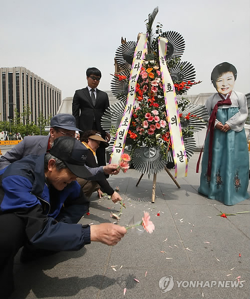 | △ 노인단체, 기초연금 공약 수정 비판하는 퍼포먼스 (서울=연합뉴스) 서명곤 기자 = 노인단체인 '빈곤노인 기초연금 보장을 위한 연대' 회원들이 어버이날을 하루 앞둔 7일 오전 서울 종로구 광화문광장에서 꽃을 줬다 뺏는 퍼포먼스를 하고 있다. 빈곤노인연대는 기초생활보장 수급자인 노인에게 기초연금 20만원을 지급한 뒤 생계급여에서 같은 금액을 공제하기로 한 정부의 행태를 비꼬아 이 같은 퍼포먼스를 기획했다고 밝혔다. 2015.5.7 seephoto@yna.co.kr |