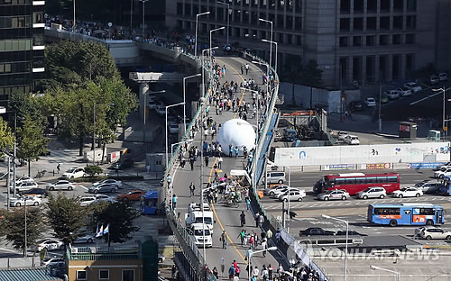 | △ 지난해 10월 서울역 고가 개방 당시 시민들이 고가를 걷고 있는 모습 (연합뉴스 자료사진) |