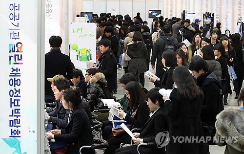 | △ 서울에서 열린 한 공공기관 채용정보 박람회를 찾은 구직자들이 공공기관 인사담당자와 상담을 하고 있다. (연합뉴스 자료사진) |