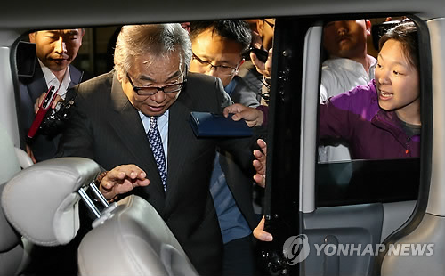 | △ "한말씀만 해주세요" (서울=연합뉴스) 임헌정 기자 = 직권남용과 횡령·배임·뇌물수수·사립학교법 위반 등의 혐의로 구속영장이 발부된 박범훈 전 청와대 교육문화수석이 8일 오전 서울 서초동 서울중앙지검에서 나와 구치소로 향하는 차량에 탑승하며 취재진의 질문세례를 받고 있다. 2015.5.8 kane@yna.co.kr |