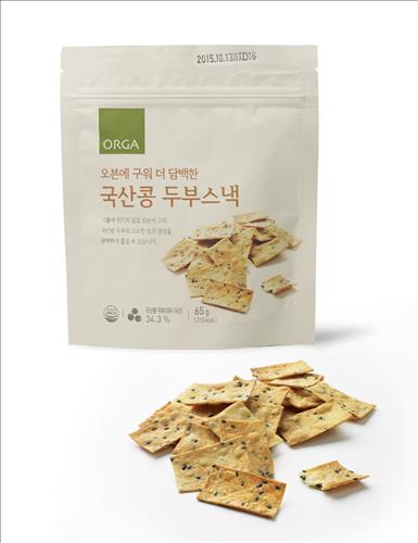 이번 두부 스낵은 합성첨가물을 넣지 않고 100% 국산콩 두부와 해바라기유, 검은깨, 유기농 설탕, 우리밀 밀가루, 황토 소금으로만 만들어 아이 간식으로 좋다고 올가는 설명했다.