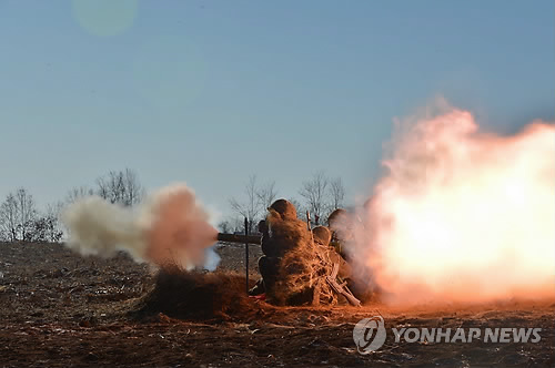 | △ 北 김정은, 군 포사격대회 시찰 (평양 조선중앙통신=연합뉴스) 북한 김정은 국방위원회 제1위원장이 군 비반충포(우리의 대전차화기에 해당) 사격대회를 시찰했다고 조선중앙통신이 8일 보도했다. 2015.1.8 photo@yna.co.kr |