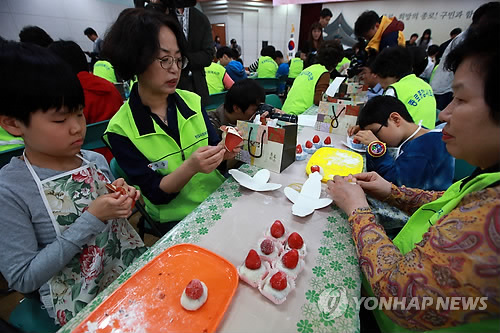 | △ 점자 레시피로 만든 사랑 (서울=연합뉴스) 박동주 기자 = 어버이날인 8일 서울 종로구청 한우리홀에서 열린 '고맙습니다' 행사에서 한 시각장애아동이 부모를 위한 찹쌀떡을 직접 만들고 있다. pdj6635@yna.co.kr |