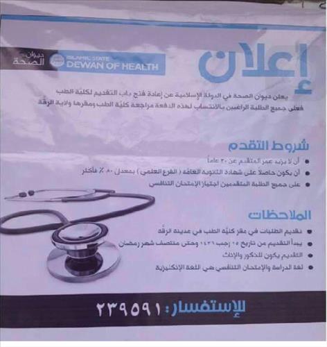 IS는 지난 1월 의과대학 입학시험을 공고하면서 응시 기간을 1개월이라고 밝혔지만 최근 주요 전선에서 부상자가 속출하자 재공고를 낸 것으로 추정된다.