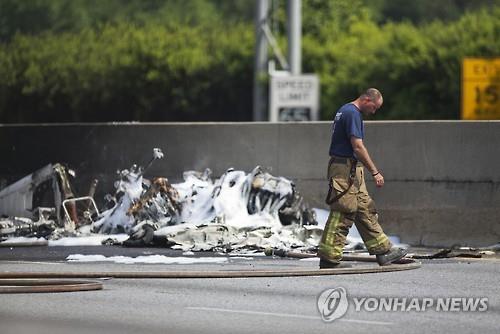 (댈러스=연합뉴스) 장현구 특파원 = 미국 조지아주 애틀랜타에서 8일(현지시간) 오전 경비행기가 주간 고속도로에 추락해 탑승자 4명 전원이 숨졌다.