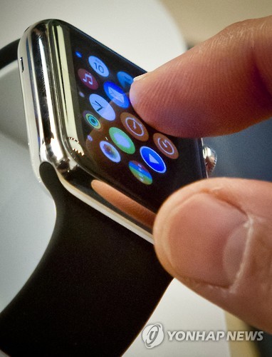 | △ 웨어러블 기기의 대표 품목인 스마트워치 시장이 5년 후에는 연간 1억 개 시대를 열 것이라는 시장전망이 나왔다. 애플사의 애플 워치 (AP=연합뉴스 자료사진) |