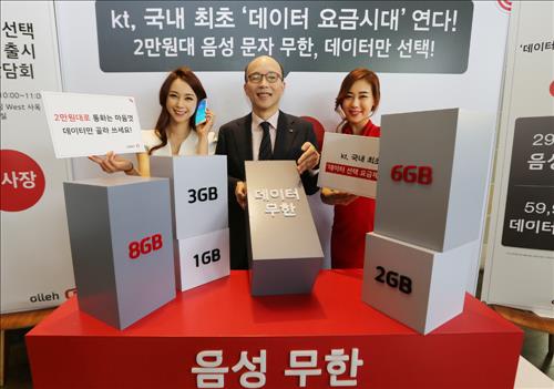 (서울=연합뉴스) 현윤경 기자 = KT[030200]가 음성통화와 문자는 무료로 제공하고 데이터 사용량에 따라 요금을 정할 수 있는 '데이터 선택 요금제'를 지난 8일 출시한 뒤 처음으로 맞은 주말 이동통신 시장에서 KT로의 번호 이동이 눈에 띄게 늘어난 것으로 집계됐다.