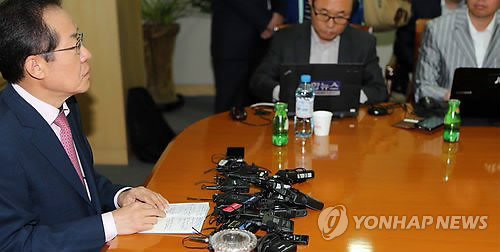 | △ 수첩 메모 보이면서 말하는 홍준표 경남지사 (창원=연합뉴스) 최병길 기자 = '성완종 리스트'에 연루돼 검찰 조사를 받은 홍준표 경남도지사가 11일 경남도청에서 열린 기자회견에서 수첩에 꼼꼼히 적어온 메모를 보며 말하고 있다. |