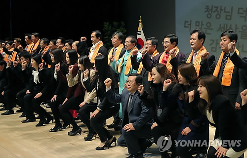 | △ 박원순 서울시장과 구청장들(연합뉴스 자료사진) |