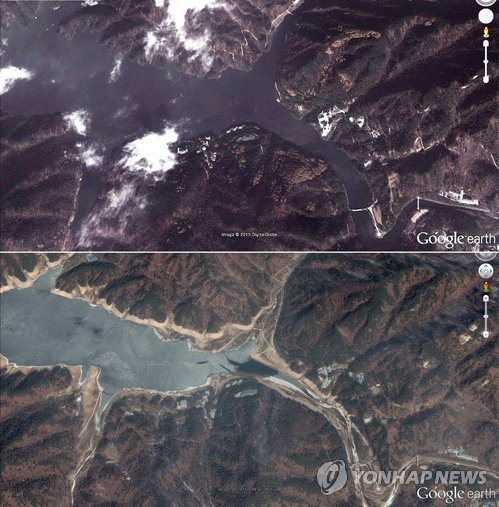 미국 존스홉킨스대학 한미연구소가 11일(현지시간) 구글어스 위성사진을 분석한결과에 따르면 북한 전역에서 호수나 저수지가 바닥을 드러내는 등 가뭄이 발생한 지역은 124곳으로 분석됐다.