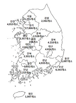 요양기관이 가장 많은 지역은 서울 강남구(2천761개소)였다. 가장 적은 곳은 경상북도 울릉군(10개소)이었다.