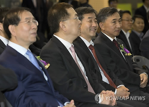 | △ 발언 듣는 엑스포 참석자들 (서울=연합뉴스) 윤동진 기자 = 박원순 서울시장(왼쪽)과 박노황 연합뉴스 사장(왼쪽 세번째) 등 참석자들이 12일 오전 서울광장 시민청에서 열린 2015 신문.뉴미디어 엑스포 개막식에서 사회자의 발언을 듣고 있다. 15일까지 4일간 열리는 이 박람회는 연합뉴스, 조선일보, 중앙일보, 한겨레 등 전국 주요 언론사들이 참여해 홍보 부스를 설치하고 자사 지면의 특징과 발전방향 등을 소개한다. 2015.5.12 mon@yna.co.kr |