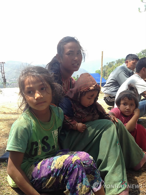 | △ '불안한 눈길' (서울=연합뉴스) 대한적십자사는 긴급의료단이 활동하는 네팔 신두팔촉 지역에서 여진이 계속되고 있다고 12일 밝혔다. 대한적십자 긴급의료단 베이스캠프로 피신한 네팔 주민들이 여진으로 인해 불안에 떨고 있다. 2015.5.12 << 대한적십자사 제공 >> photo@yna.co.kr |