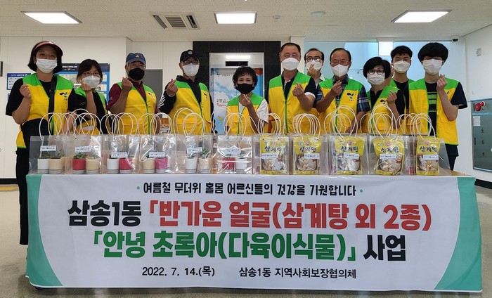 [부자동네타임즈 김인수기자] 고양특례시 삼송1동행정복지센터(동장 김동원)는 지난 14일 삼송1동지역사회보장협의체가 저소득층 홀몸어르신 15명에게 건강한 여름나기를 위한 삼계탕과 정서적 안정과 행복한 노년을 기원하는 반려식물 다육이를 전달했다고 밝혔다.