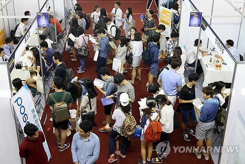 | △ 취업박람회장에 취업준비생들이 각 기업 부스를 돌며 상담을 받고 있다. (연합뉴스 자료사진) |