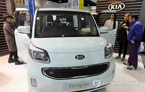 | △ 지난 3월 열린 국제전기자동차엑스포(IEVE)에서 행사 참가자들이 전시차량을 살펴보고 있다. (연합뉴스 자료사진) |