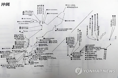 | △ 일본, 자살특공기지 있던 곳도 세계문화유산 등재 추진 (서울=연합뉴스) 국무총리 소속 대일항쟁기강제동원피해조사 및 국외강제동원희생자 등 지원위원회에 따르면 일본은 세계유산 등재를 위한 잠정 목록 11개 지역 이외에도 아마미(奄美)·유쿠(琉球) 지역 등재를 추진하고 있다. 이들 지역에 있던 군사 시설 등을 표기한 지도. 2015.5.13 <<전시조선인 강제노동 조사자료집, 위원회 제공>> photo@yna.co.kr |