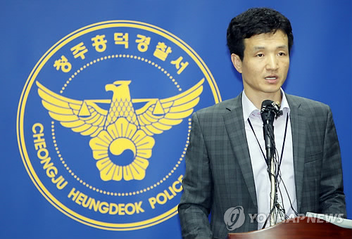 | △ 브리핑하는 청주 흥덕경찰서 이정락 과장 (청주=연합뉴스) 김형우 기자 = 13일 오전 청주 흥덕경찰서는 동료를 살해하고 암매장한 교통사고 사기범 사건과 관련해 브리핑을 하고 있다. |