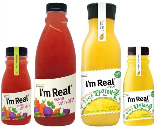 풀무원의 '아임리얼' 주스는 물 한 방울 더하지 않고 순수하게 과일과 야채만 짜서 만든 음료다.