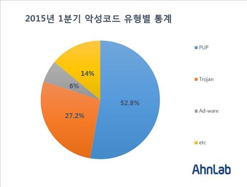 악성코드 중에서는 '유해 가능 프로그램(PUP)'이 전체의 52.8%를 차지했다.