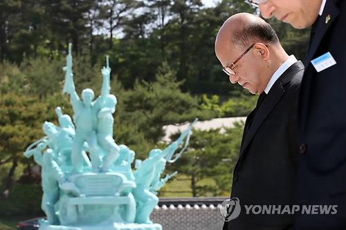| △ 5·18묘지 참배하는 박한철 헌재소장 (광주=연합뉴스) 박철홍 기자 = 박한철 헌법재판소장이 13일 오전 광주 북구 운정동 국립5·18민주묘지를 방문, 헌법재판소장으로는 처음으로 국립 5·18 민주묘지를 참배하고 있다. 박 헌재소장은 이날 "헌법재판소가 5·18 정신이 바탕이 돼 태동 했고, 그것이 존립근거라고 생각한다"고 밝혔다. 2015.5.13 pch80@yna.co.kr |