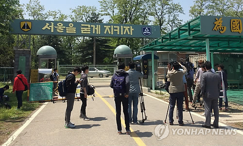 | △ 총기 사고 발행한 예비군 훈련장 (서울=연합뉴스) 신준희 기자 = 13일 오전 예비군 사격훈련중 총기 사망사고가 발생한 예비군 훈련장 앞에서 취재진이 취재하고 있다. |
