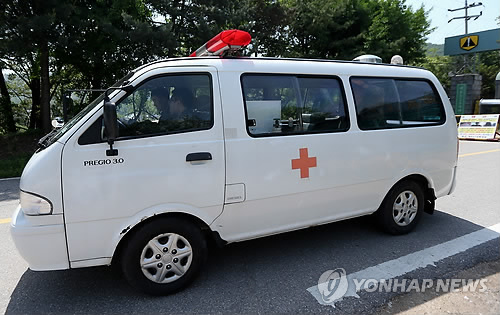 | △ 총기사고 부대서 나오는 구급차 (서울=연합뉴스) 신준희 기자 = 13일 총기 사고가 발생한 서울 내곡동 예비군훈련장에서 군 앰뷸런스가 나오고 있다. |