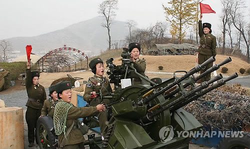 | △ 북한군이 운용중인 고사총 (서울=연합뉴스) 북한이 최근 공개처형한 현영철 전 인민무력부장 처형에 고사총을 사용했다고 13일 국가정보원이 밝혔다. 북한군이 운용하고 있는 고사총은 저공 비행하는 항공기나 헬기를 요격하는 데 쓰이는 대공 무기로, 구경 14.5㎜에 분당 1천200발을 발사할 수 있다. 사람을 직접 겨냥해 발사하는 무기가 아니다. 이번에 사용된 북한의 처형 방식은 현대 문명국가에서 자행됐다고는 보기 어려울 정도로 잔혹하다. 사진은 북한 평안남도에 근무하는 여성항공고사포부대원들이 훈련하고 있는 모습. 2015.5.13 << 연합뉴스DB >> photo@yna.co.kr |
