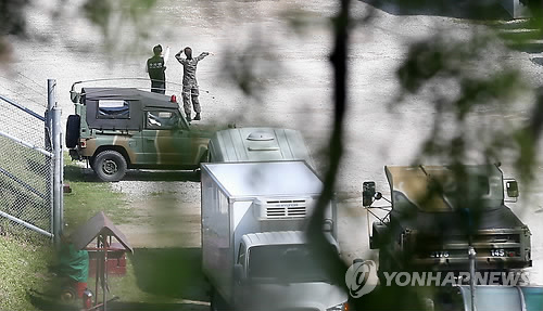 | △ 조사하는 수사관 (서울=연합뉴스) 신준희 기자 = 13일 총기 사고가 발생한 서울 내곡동 예비군훈련장에 들어간 과학수사대 수사관들이 조사 작업을 벌이고 있다. |