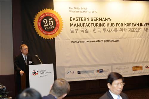(서울=연합뉴스) 김연숙 기자 = 독일무역투자진흥처(GTal)는 독일 통일 25주년을 맞아 13일 서울 신라호텔에서 한국 기업들을 상대로 독일 동부지역에 대한 투자설명회를 열었다.