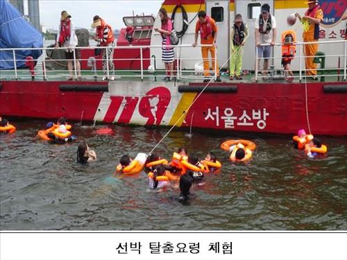 체험교실은 10월31일까지 한강의 반포·뚝섬·여의도 등 3개 수난 구조대에서 10월31일까지 운영된다. 2시간 과정으로 페트병 등 생활용품을 이용한 익수자 구조법, 구명조끼 착용법, 선박 비상 탈출법, 심폐소생술 등을 배울 수 있다.