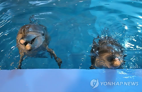 (제주=연합뉴스) 변지철 기자 = 불법 포획돼 공연 무대에 올려지며 동물학대 논란이 일었던 국제보호종 남방큰돌고래 태산이(수컷)와 복순이(암컷)의 '고향 바다 돌려보내기' 특별 작전이 14일 시작됐다.