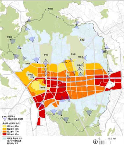 시는 또 내사산과 성곽의 독특한 경관을 보존하기 위해 도심부 건물 높이를 90m로 제한하겠다고 밝혔다.