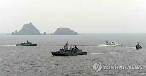 | △ 해군과 해경은 14일부터 이틀 일정으로 독도방어훈련을 비공개리에 실시하는 것으로 알려졌다. 사진은 지난해 11월 독도 인근 해상에서 훈련 중인 해군 함정들. (연합뉴스 자료사진) |