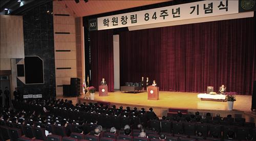 (서울=연합뉴스) 김동규 기자 = 건국대는 15일 서울 광진구 능동로 교내 새천년관에서 학원창립 84주년 기념식을 열었다.