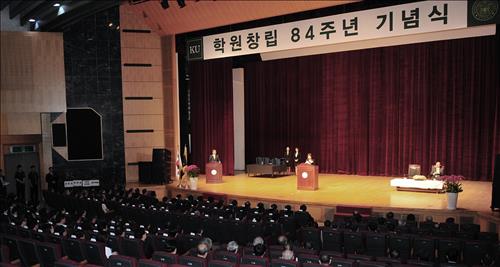 (서울=연합뉴스) 김동규 기자 = 건국대는 15일 서울 광진구 능동로 교내 새천년관에서 학원창립 84주년 기념식을 열었다.
