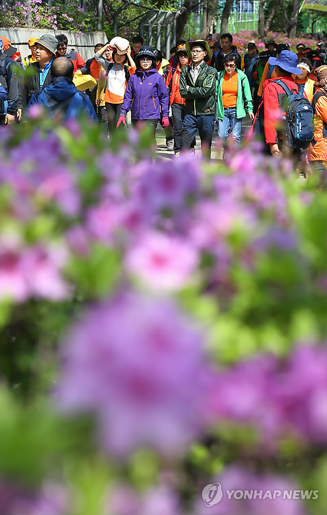 | △ 봄을 즐기기 위해 관악산 찾은 시민들 (서울=연합뉴스) 김도훈 기자 = 26일 오전 서울 관악구 관악산에서 봄 산행에 나선 시민들이 등산로를 따라 이동하고 있다. 기상청은 이날 고기압의 영향으로 전국이 맑고 낮 최고기온이 21~30도로 전날보다 높을 것으로 예보했다. 2015.4.26 |