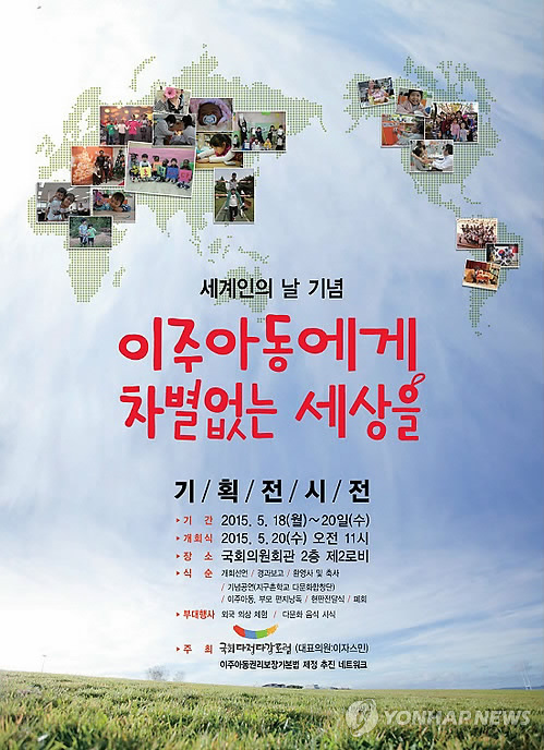새누리당 이자스민 의원과 이주아동권리보장기본법 제정 추진 네트워크가 주최한 이 전시회는 '이주아동에게 차별 없는 세상을'이란 주제로 오는 20일까지 계속된다.