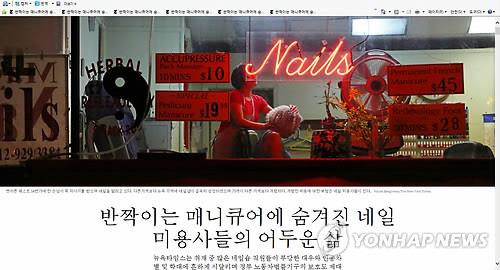 NYT는 한인 네일살롱이 노동자를 학대한다는 장문의 시리즈 기사를 최근 모바일, 인터넷, 지면에 실었다.