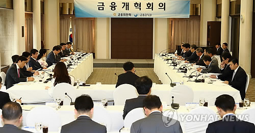 | △ '제3차 금융개혁회의' (서울=연합뉴스) 18일 오전 서울 중구 프레스센터에서 열린 제3차 금융개혁회의에서 금융개혁회의 민상기 의장이 회의를 진행하고 있다. (금융위원회 제공) |