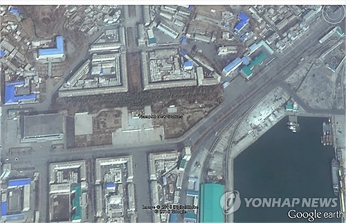 | △ 북한, 남포시에 김일성·김정일 동상 건립 중 (서울 구글=연합뉴스) 지난 3월 촬영된 구글 위성사진에 따르면 북한이 남포시에 김일성·김정일 부자의 동상을 건립하고 있는 것으로 보인다. 동상이 놓일 것으로 추정되는 사각형으로 정돈된 회색 부지의 모습이 사진에 보인다. |