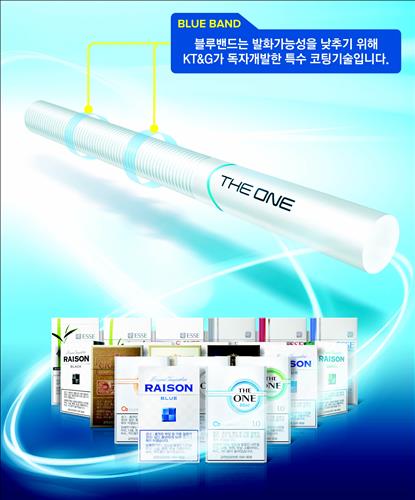 KT&G는 독자적인 담배제조 기술인 저발화성 블루밴드(Blue Band)를 전 제품에 확대 적용한다고 19일 밝혔다.