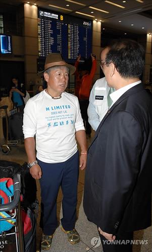 (서울=연합뉴스) 고일환 기자 = 대한적십자사 긴급구호대장 자격으로 네팔에서 구호활동을 마치고 귀국한 산악인 엄홍길(55) 대장이 대지진으로 파괴된 네팔의 재건을 위한 도움을 호소했다.