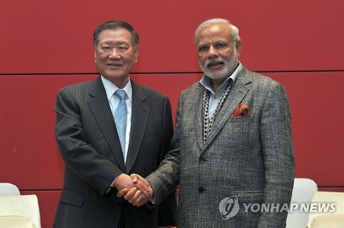 이날 정 회장과 모디 총리와의 면담에는 정 회장의 아들인 정의선 현대차 부회장이 동석했다.