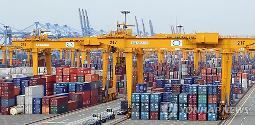 | △ 부산 신항에 있는 컨테이너 야적장(연합뉴스 자료사진) |