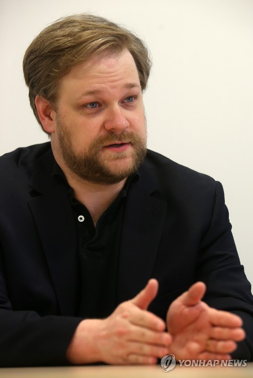 | △ 조슈아 벤튼 하버드대 니먼랩 소장 (서울=연합뉴스) 양지웅 기자 = 조슈아 벤튼 하버드대 니먼랩 소장이 19일 서울 동대문디자인플라자에서 연합뉴스와 인터뷰를 갖고 있다. 2015.5.19 yangdoo@yna.co.kr |